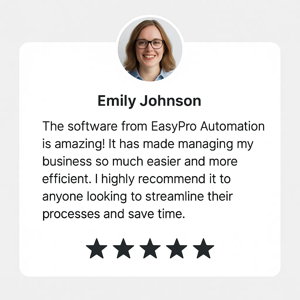 The software is great! It’s user-friendly and has helped me easily streamline my business processes. I highly recommend it to anyone looking to improve their efficiency.